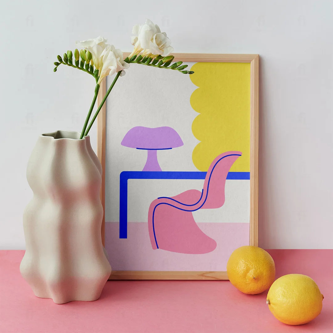 The poster shows a stylish armchair in Scandinavian style, which fits perfectly with modern interior design. It adds elegance and coziness to the space.