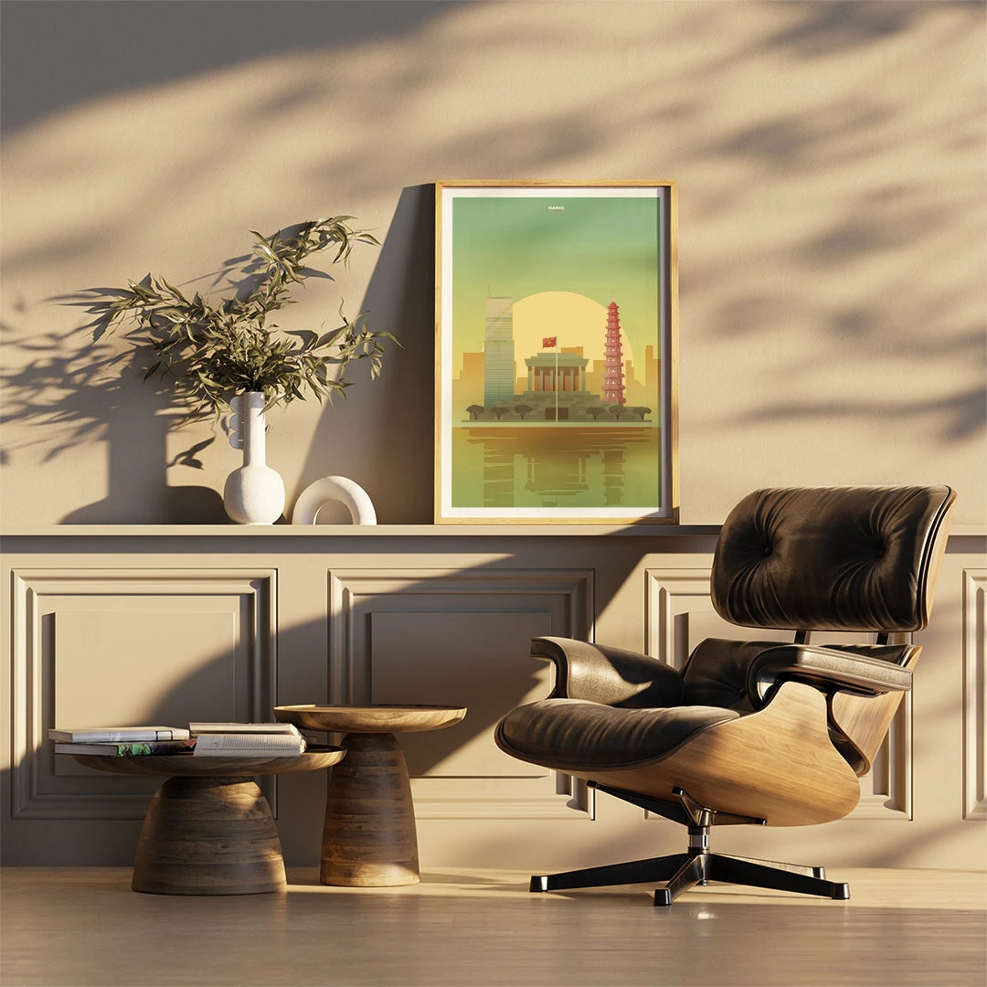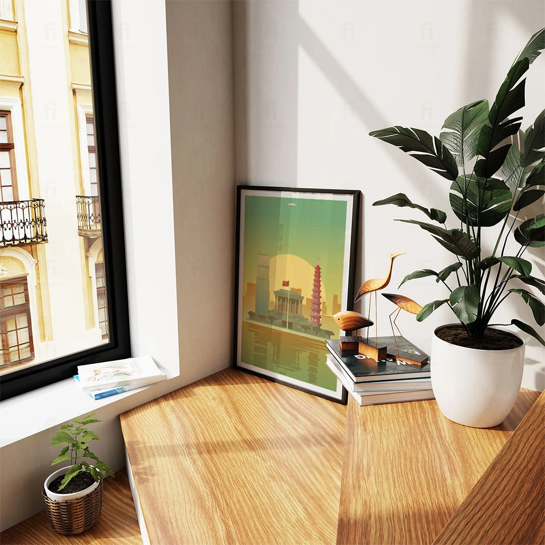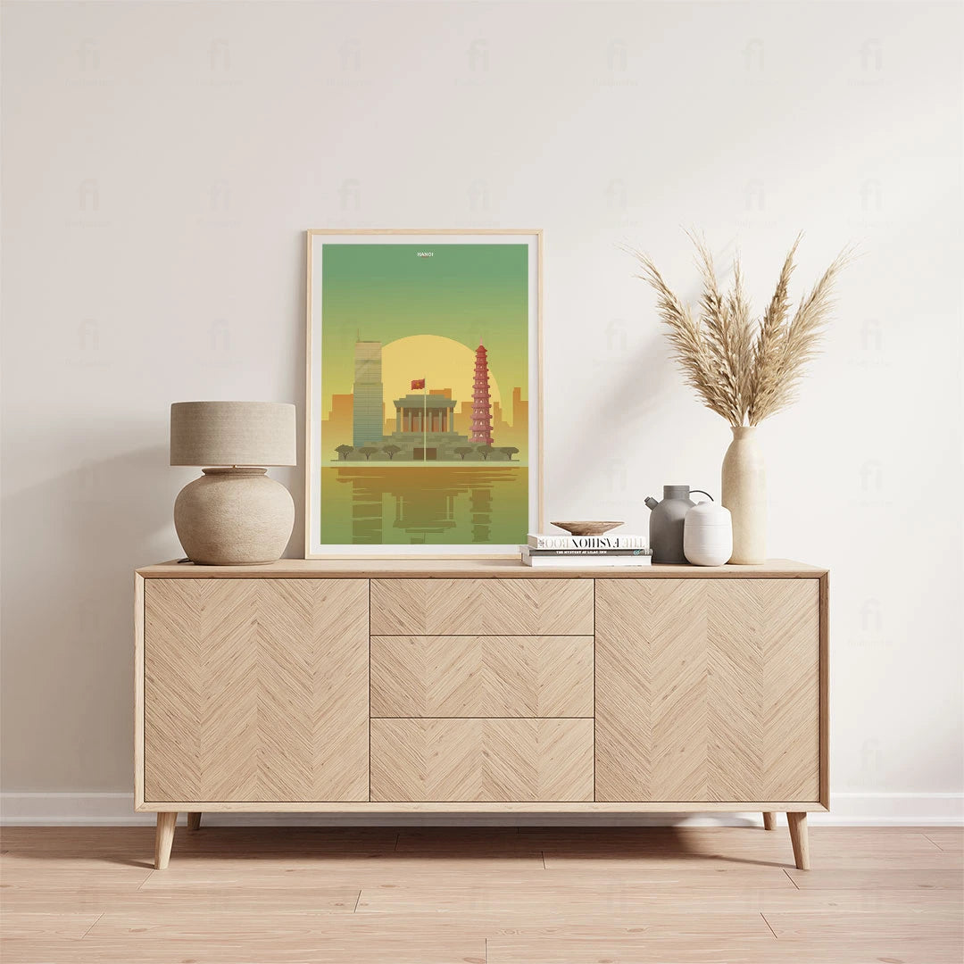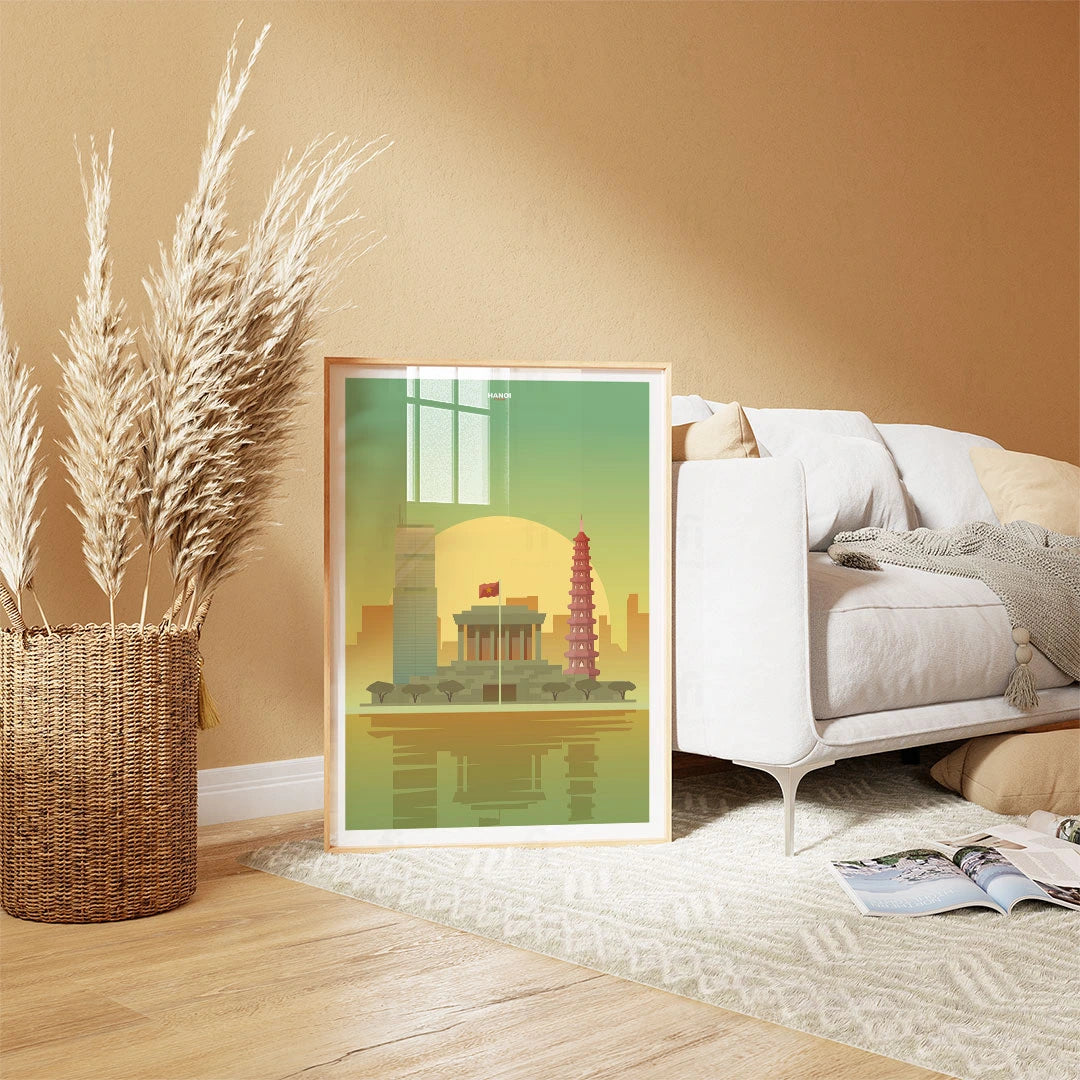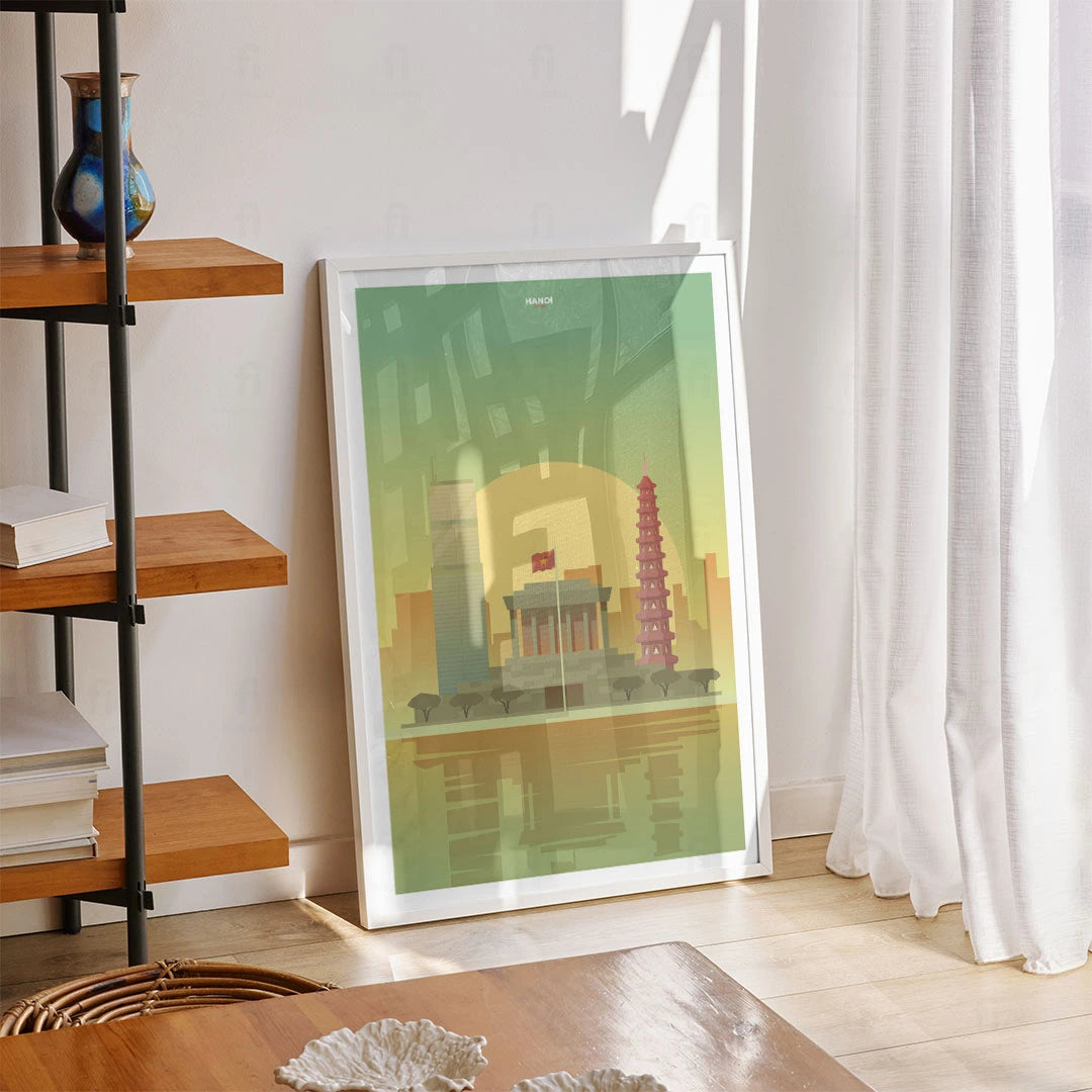 Discover historic Hanoi with our poster, which shows the city's classic buildings and modern skyscrapers. Perfect for those who appreciate Asian architecture and culture.