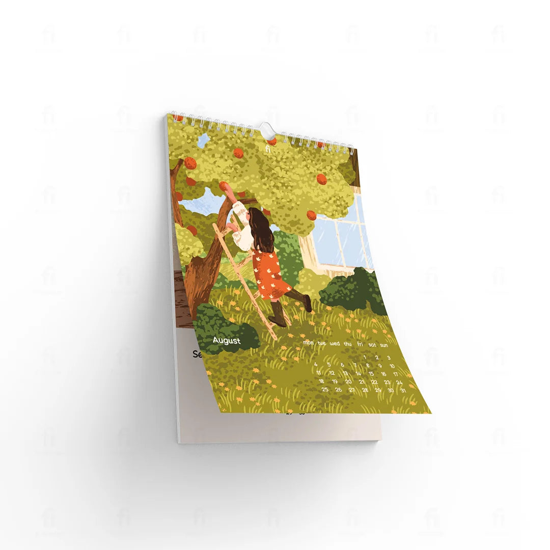 Każdy miesiąc zachwyca unikalną ilustracją, utrzymaną w lekkim, przyjemnym stylu, który czerpie inspirację z codziennych, pełnych uroku momentów. Starannie wykonane, barwne grafiki dodają wnętrzom przytulności, tworząc atmosferę spokoju i ciepła.w