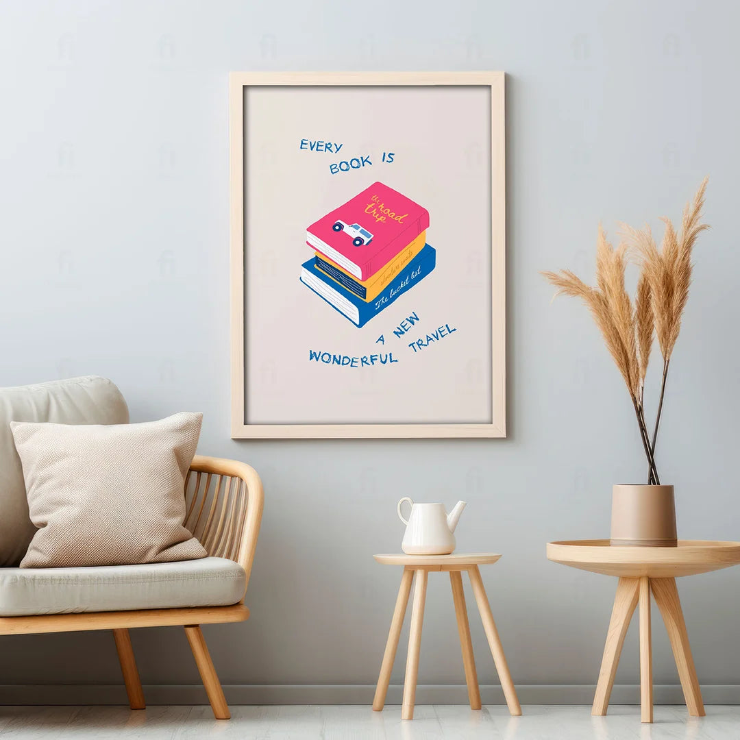 The poster "Every book is a new, wonderful journey" reminds us that every reading opens the door to amazing adventures. Perfect for book lovers, bringing inspiration and the joy of discovering new worlds.