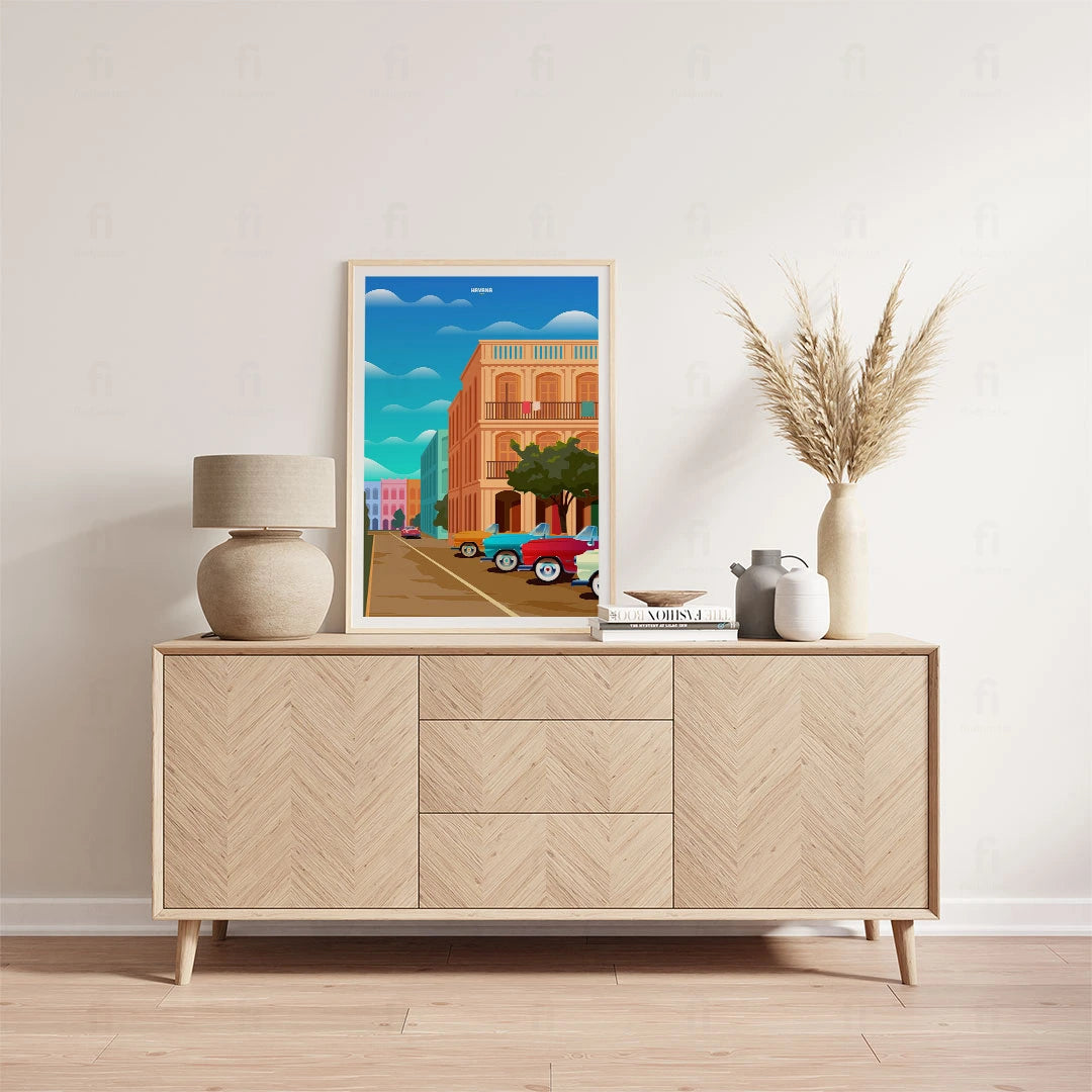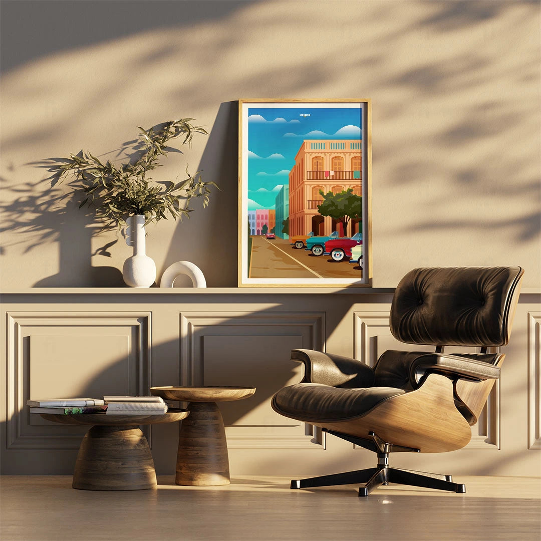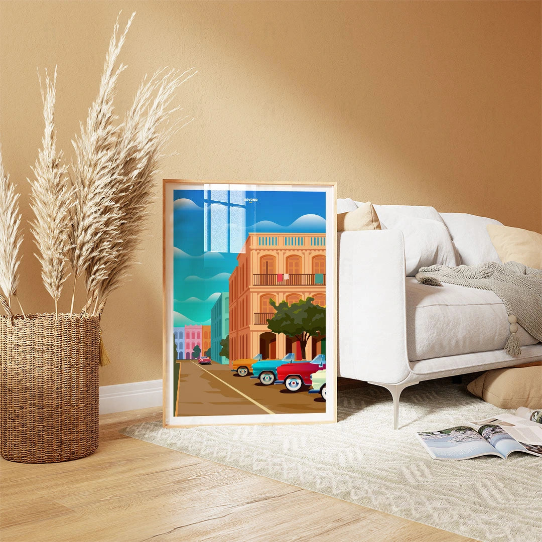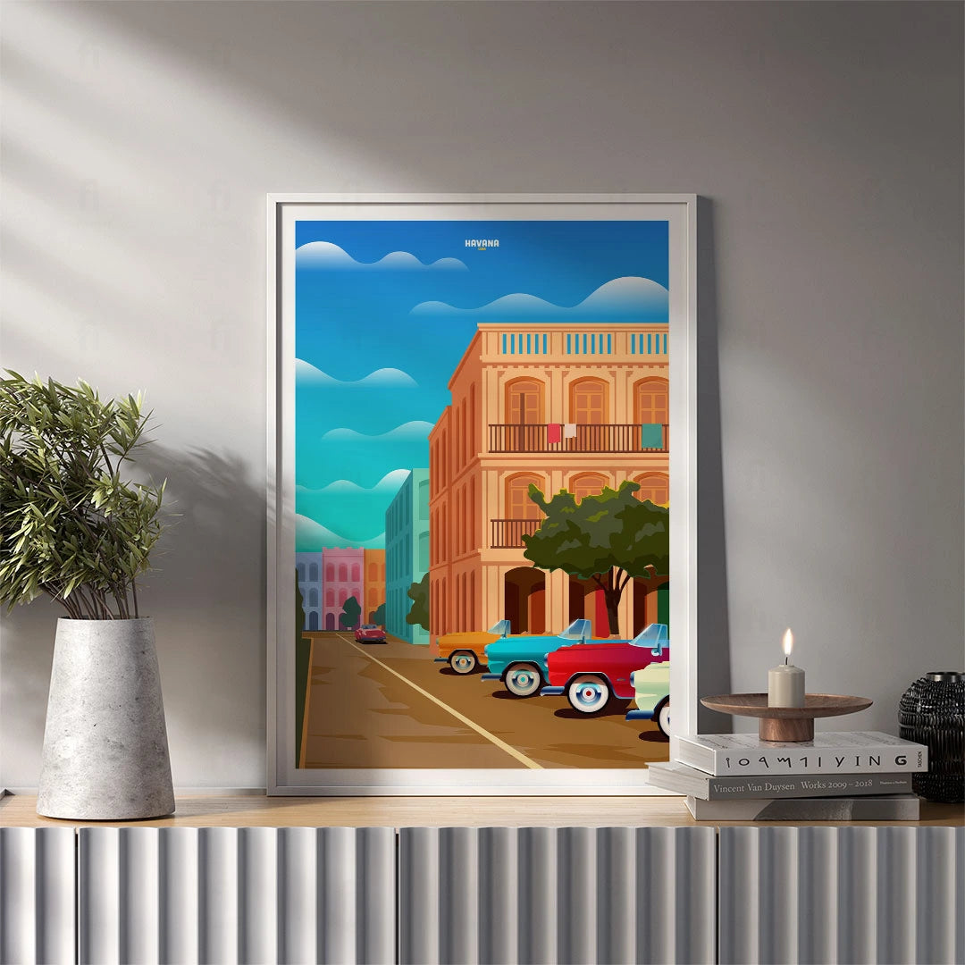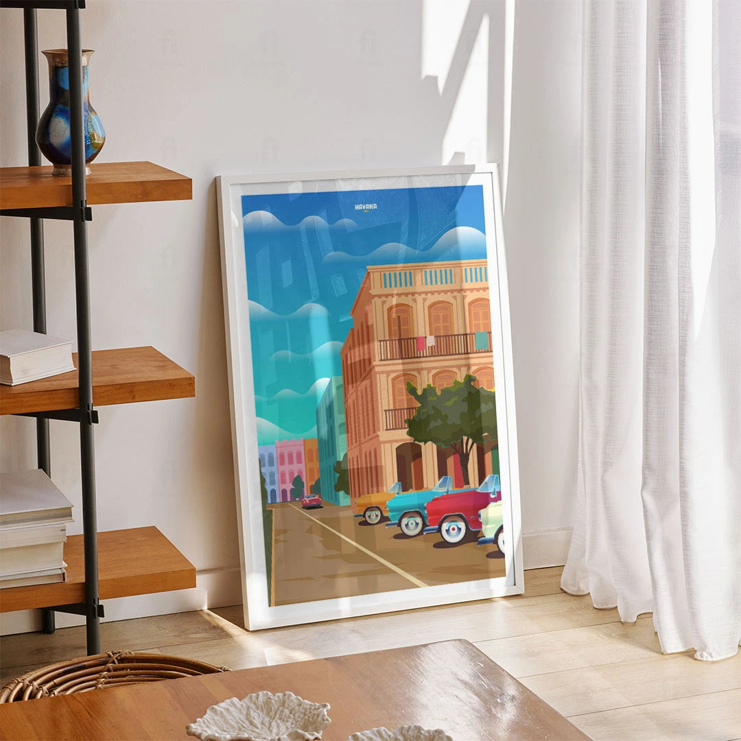 Feel the rhythm of Cuban Havana with our poster that depicts colorful streets and classic cars. Perfect for those who appreciate the Caribbean atmosphere and cultural diversity.