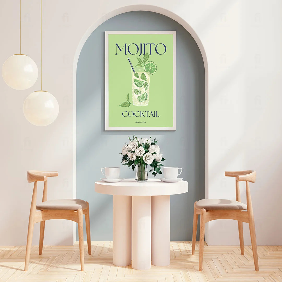 Decorate your home with the Mojito poster, which depicts a classic cocktail. Perfect for the kitchen, living room or home bar, where it can inspire the preparation of this delicious drink.