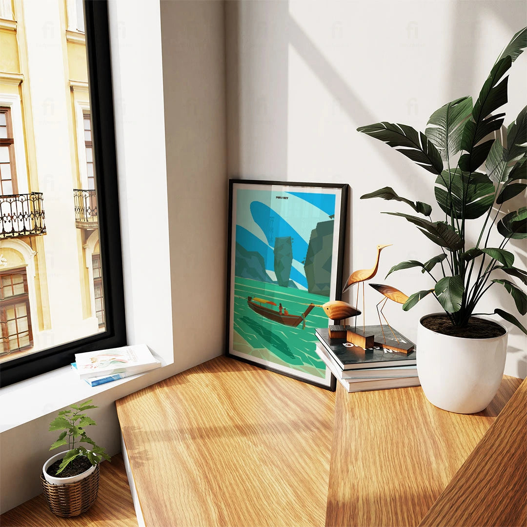 Immerse yourself in the exotic charm of Phuket with its turquoise waters and traditional boats. Perfect for anyone dreaming of a tropical vacation.