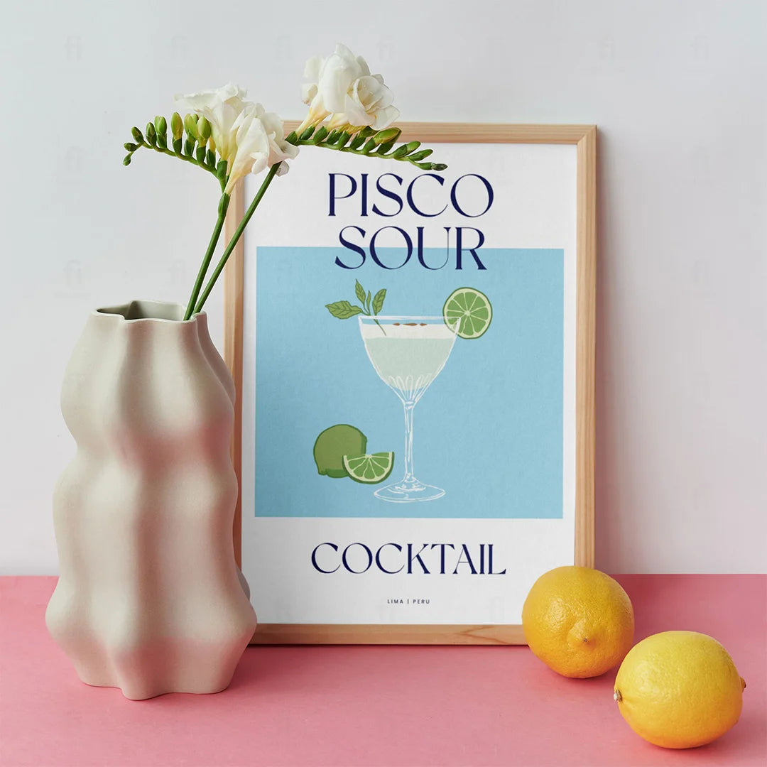 Decorate your home with the Pisco Sour poster, which depicts a classic cocktail. Perfect for the kitchen, living room or home bar, where it can inspire the preparation of this delicious drink.