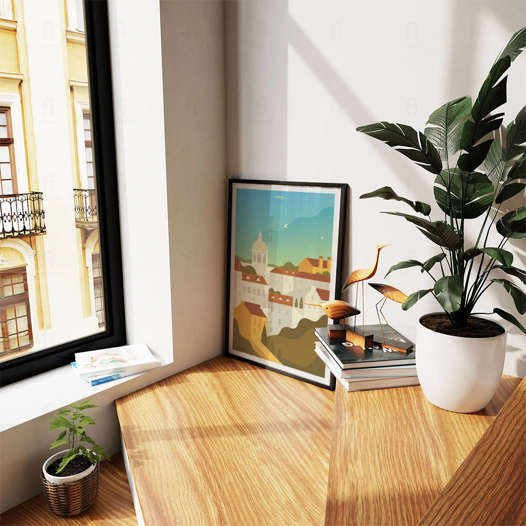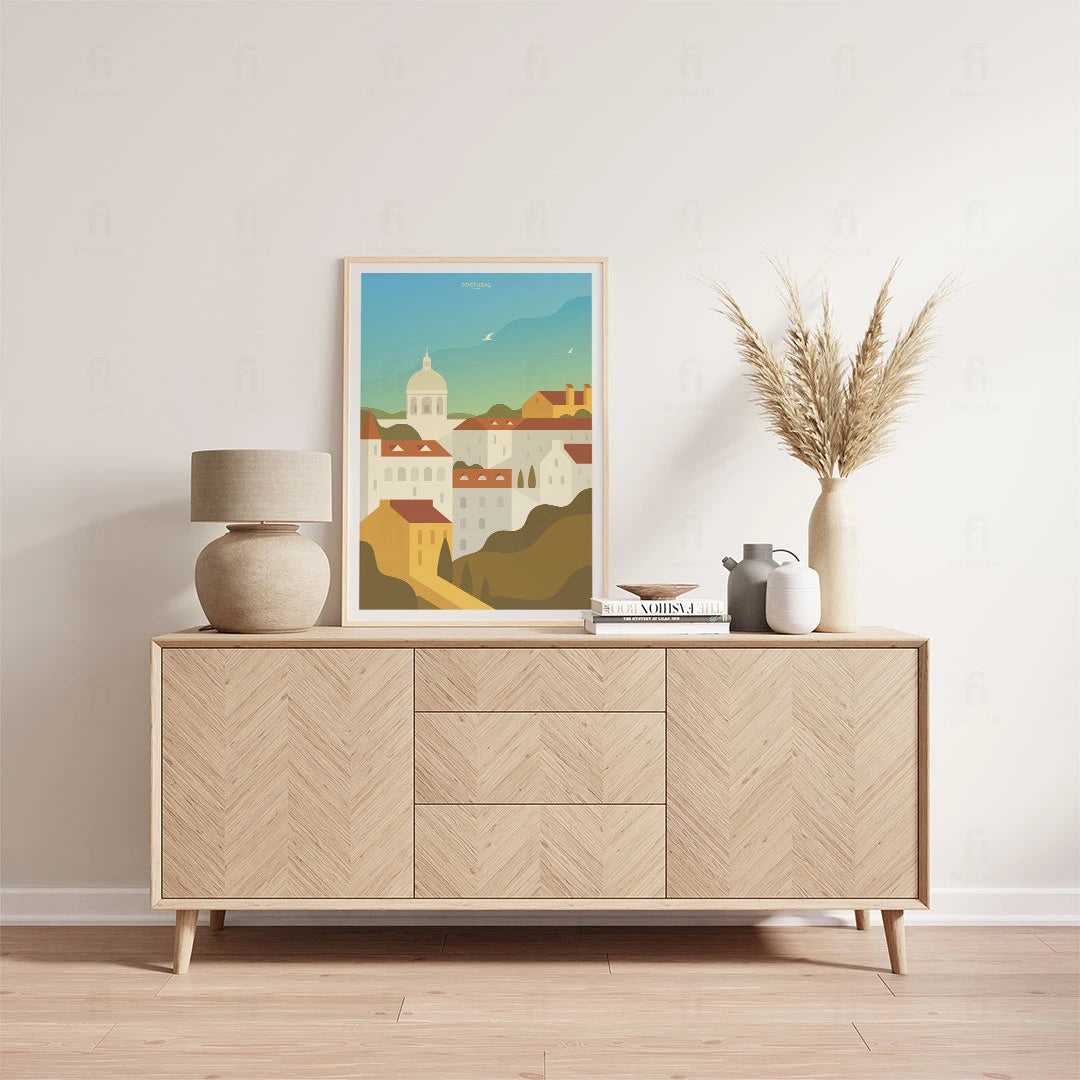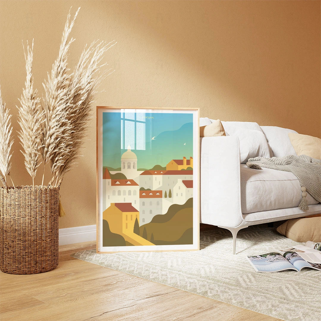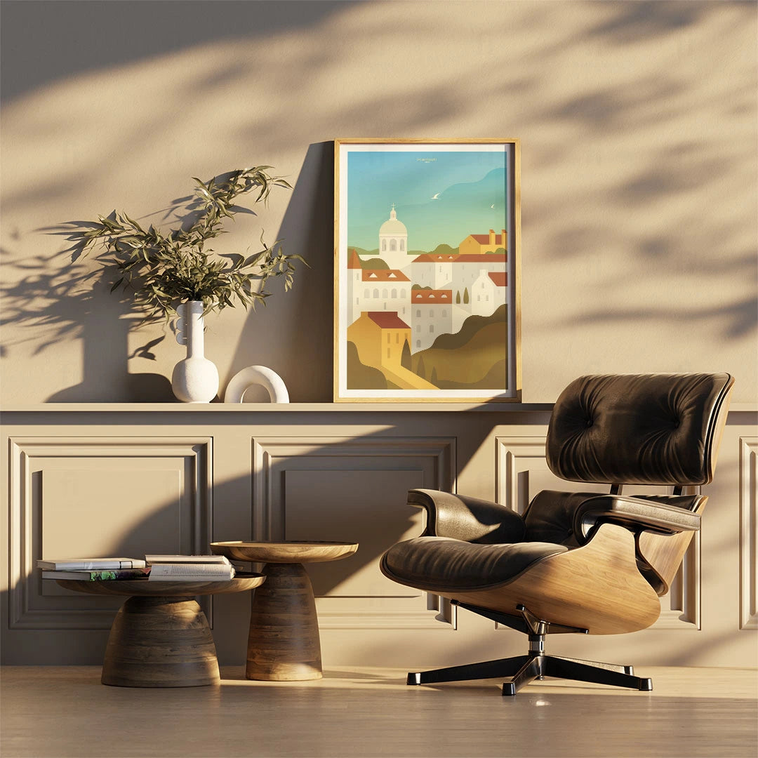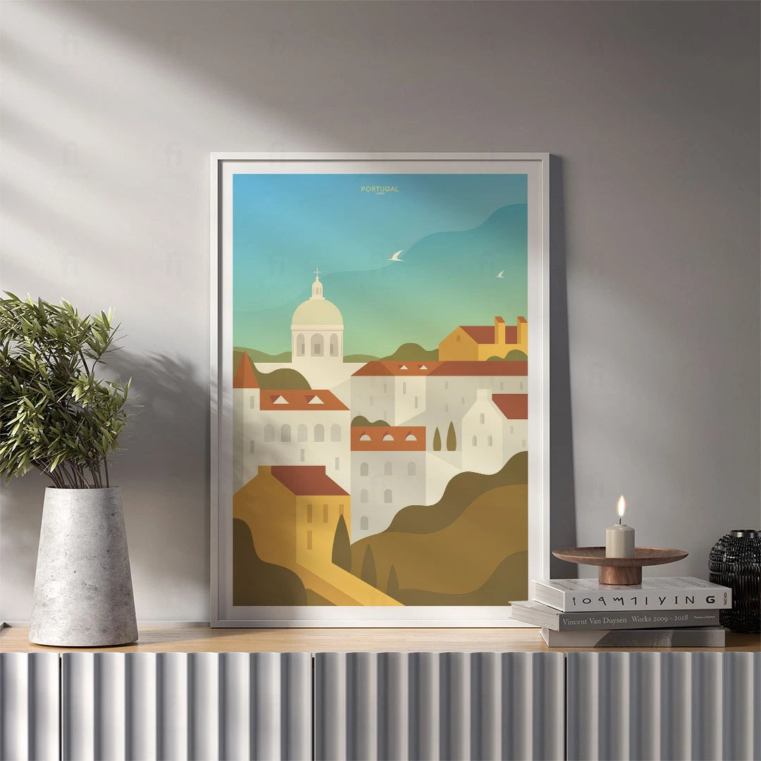Experience the spirit of Lisbon with our poster, which showcases the city's distinctive architecture and warm colors. Perfect for those who love to explore European cities.
