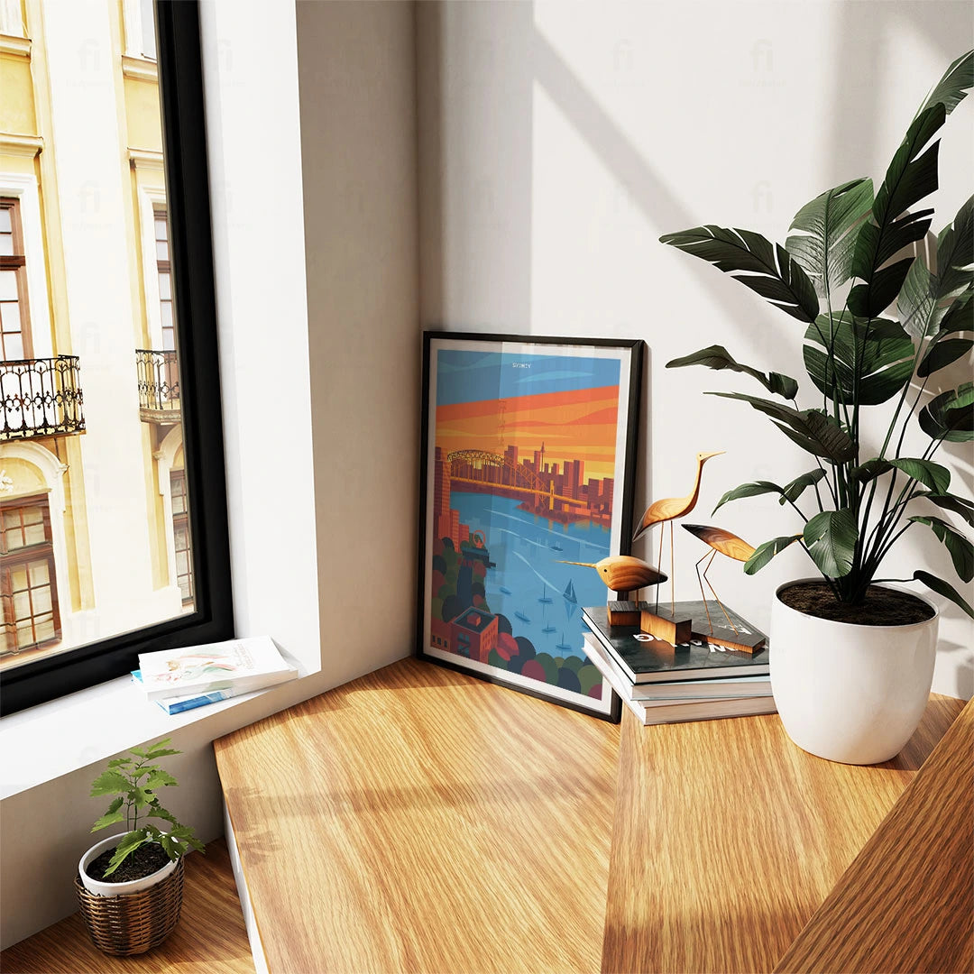 Immerse yourself in Sydney's dynamic landscape with our poster of the iconic Harbour Bridge at sunset. Perfect for lovers of cityscapes and Australian charm.
