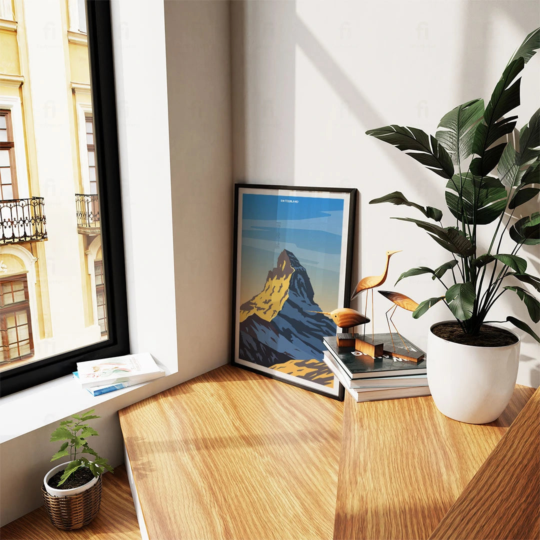 Marvel at the majesty of the Matterhorn on our poster, which shows one of Europe's most famous mountains in the golden light of sunset. Perfect for mountain and nature lovers.