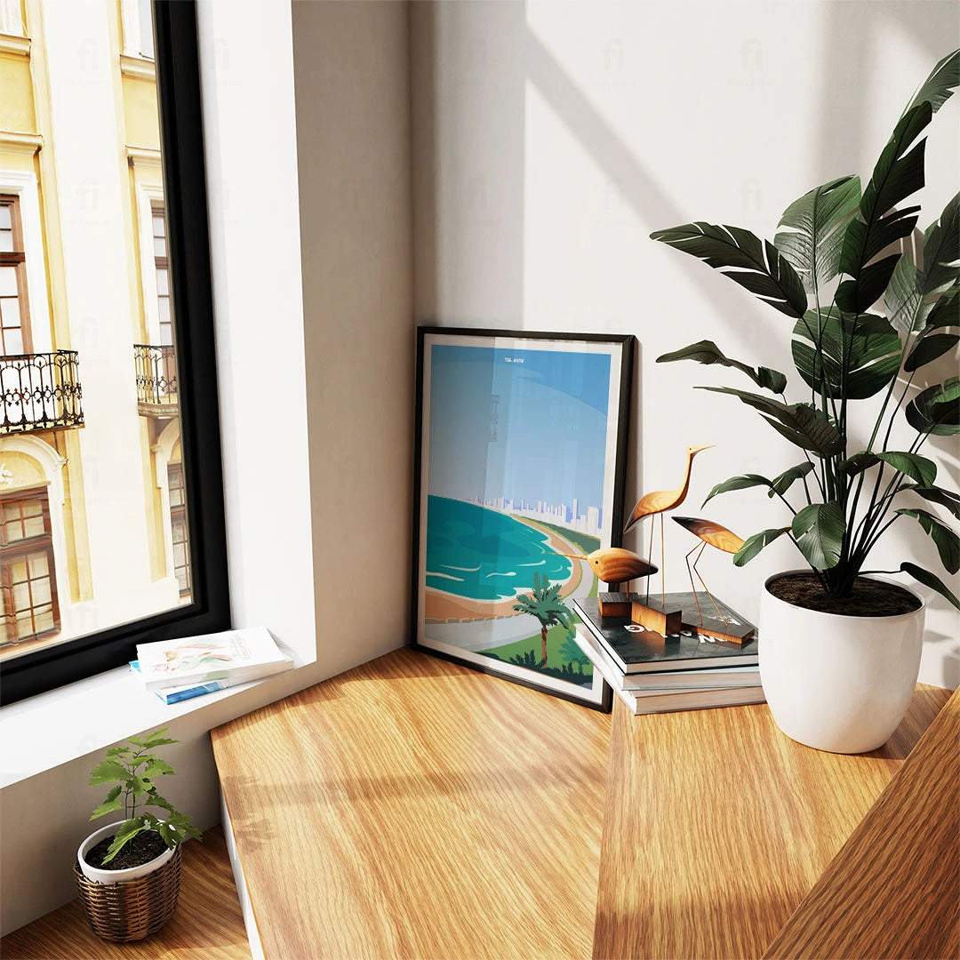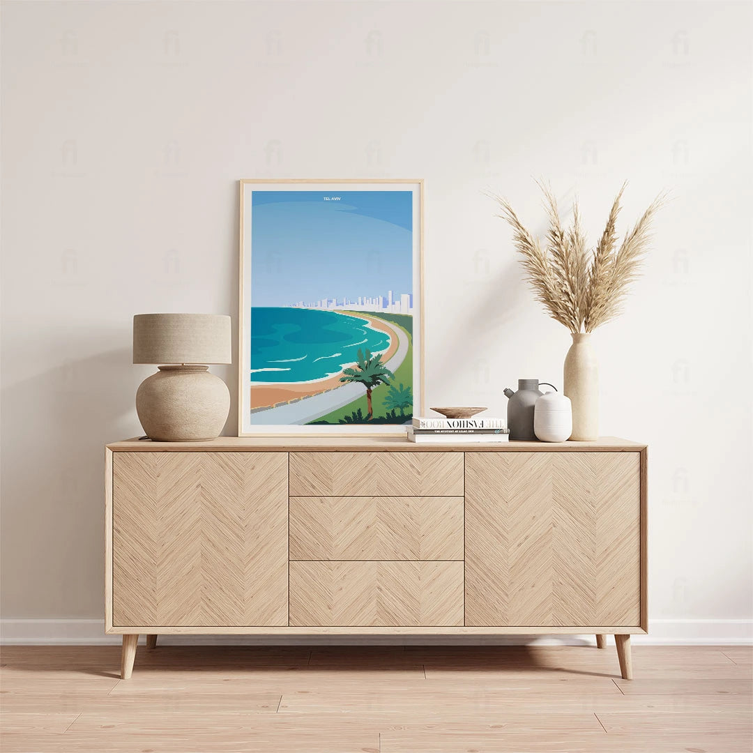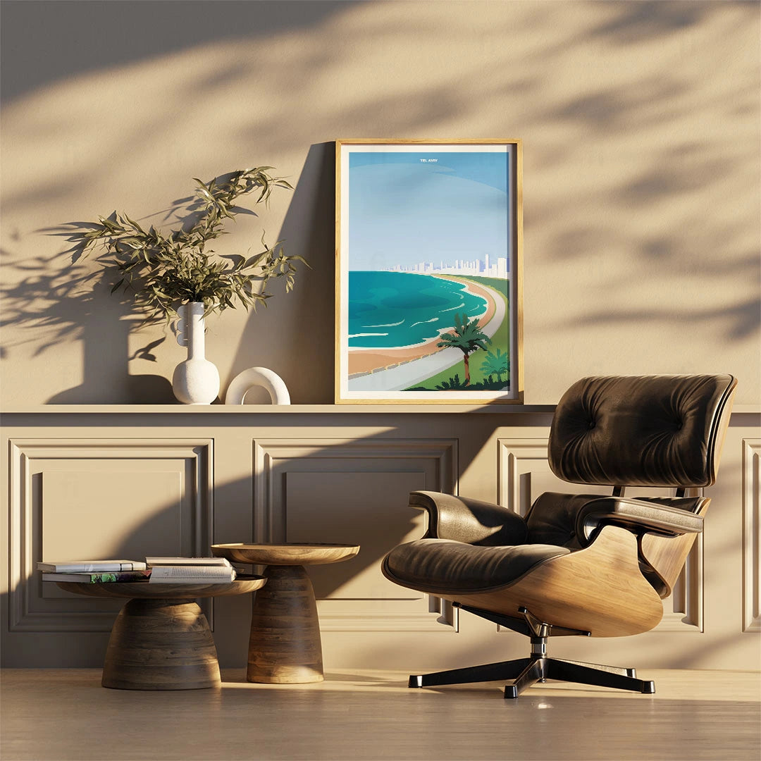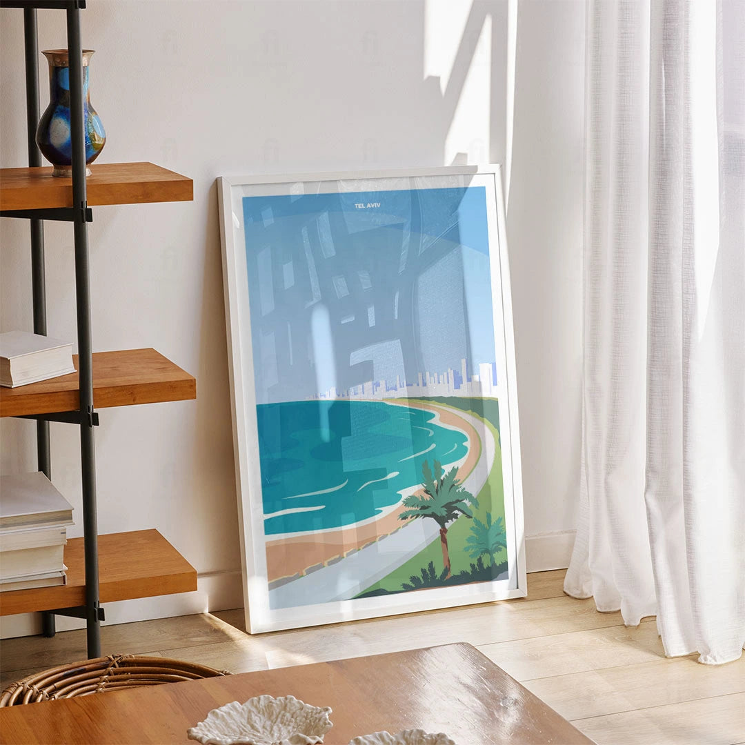 Discover the beauty of Tel Aviv with our poster that shows the sunny beaches and modern architecture of the city. Perfect for lovers of Mediterranean climates and modern lifestyle.