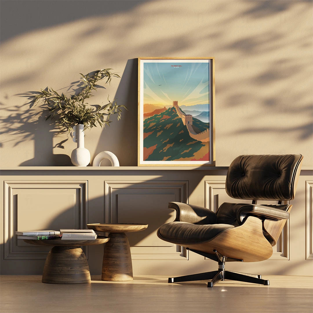 Discover the majesty of the Great Wall of China on our poster that captures its monumental character at sunset. Perfect for those passionate about Asian history and culture.