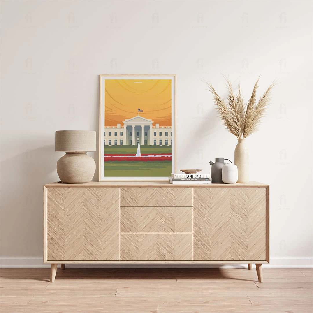 Marvel at the symbol of American democracy, the White House, on our poster. Perfect for fans of US history and politics.