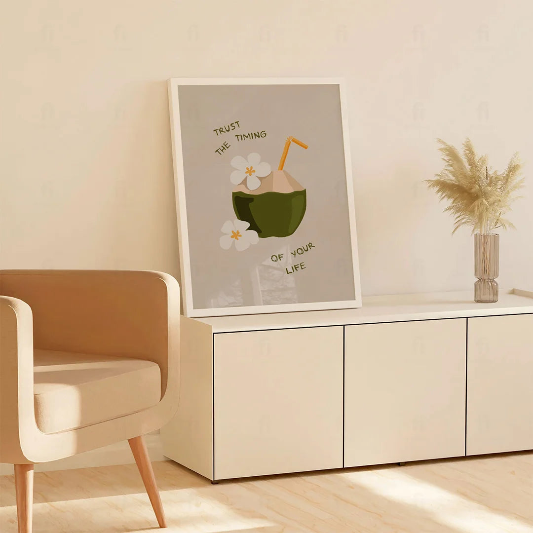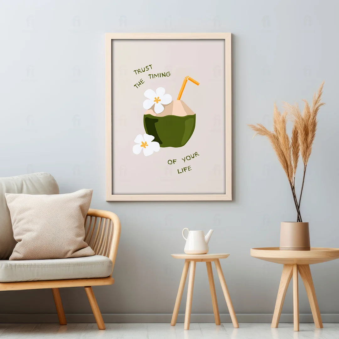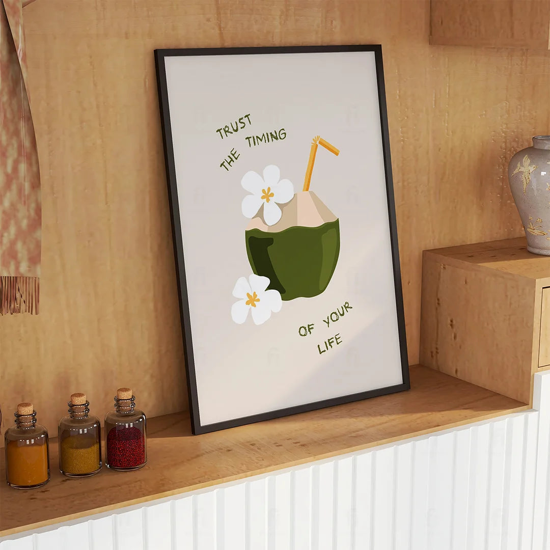 The poster "Trust Time" encourages you to trust your life and its time. Perfect for interiors that need a reminder of patience and acceptance.